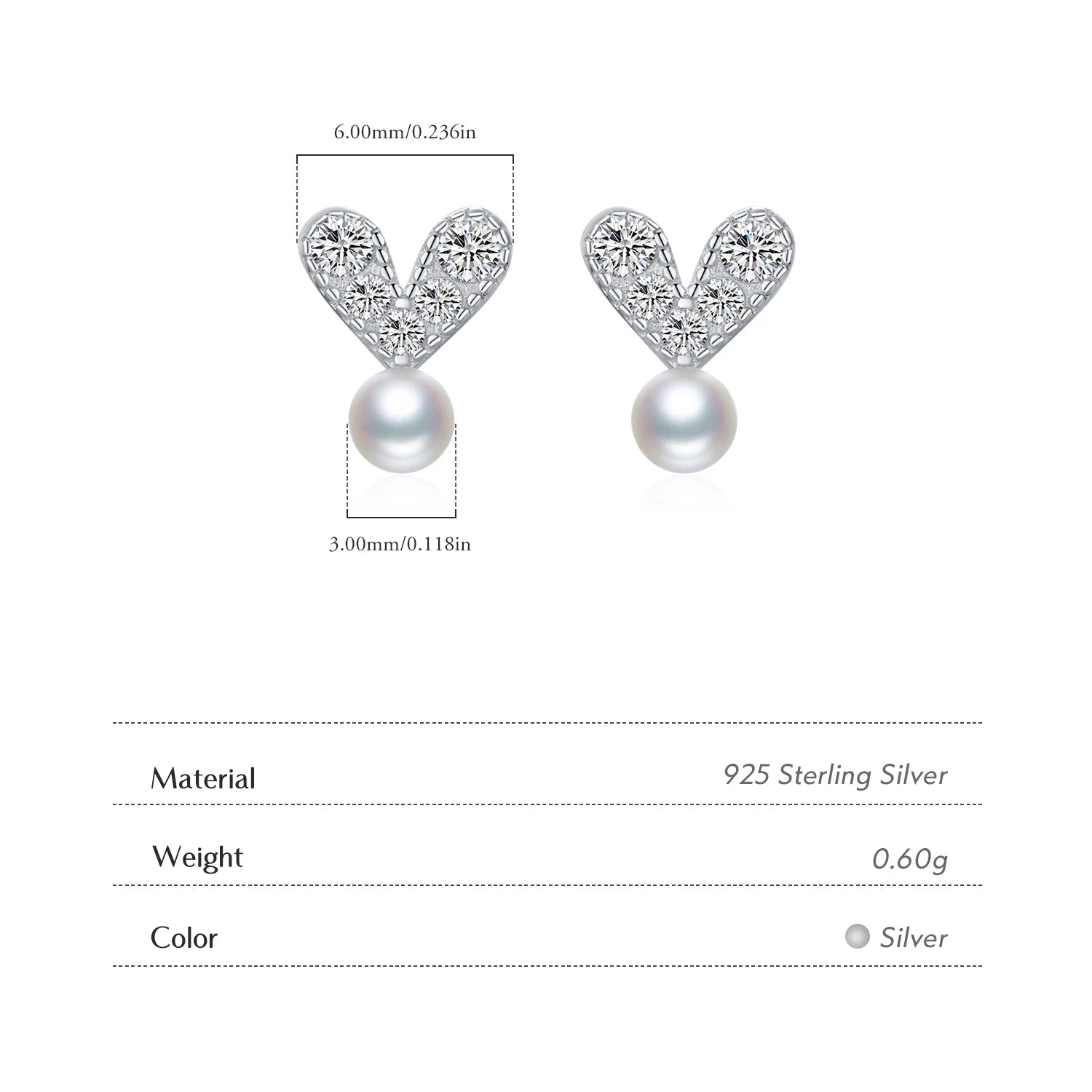 Women’s Heart and Pearl Earrings in 925 Sterling Silver